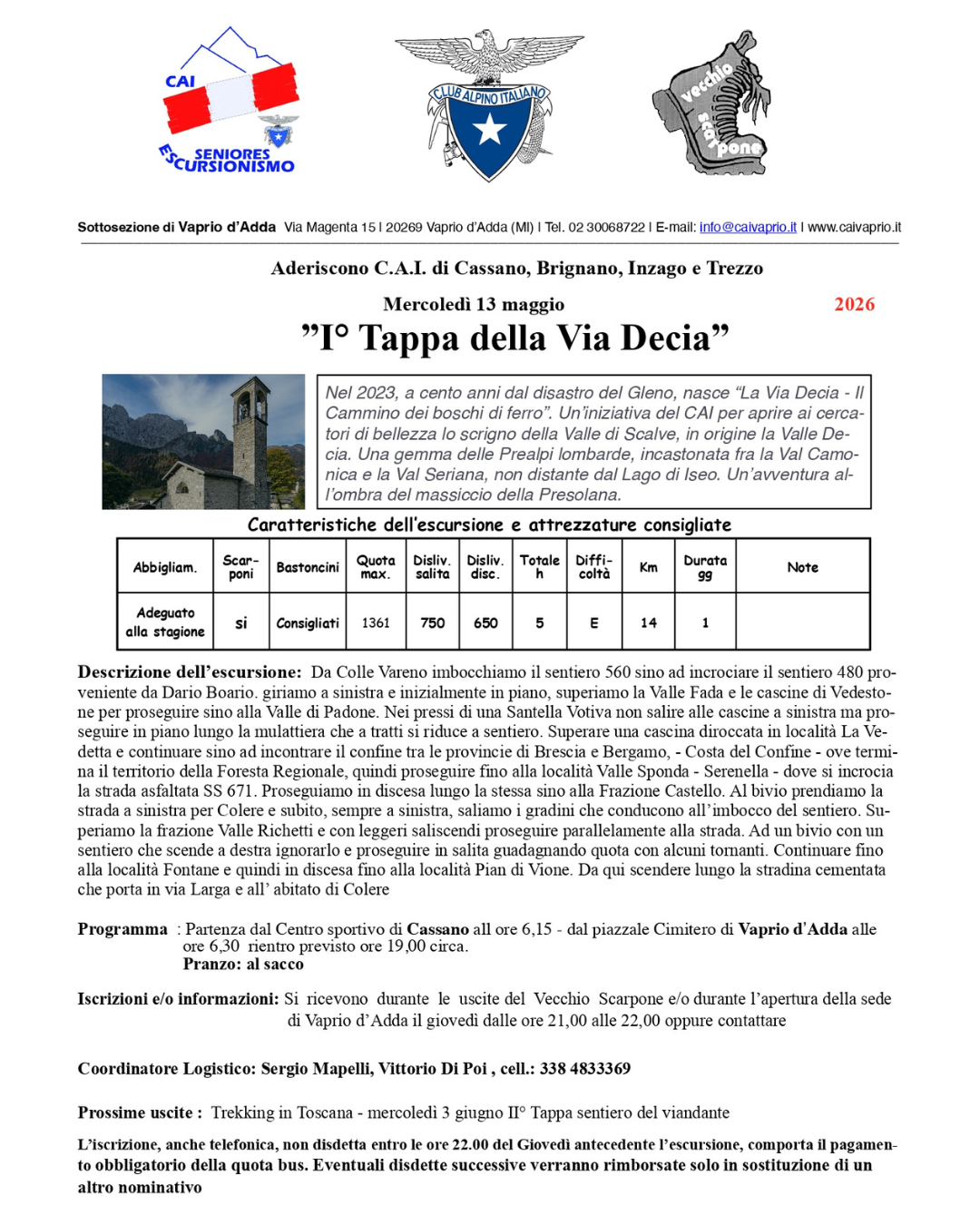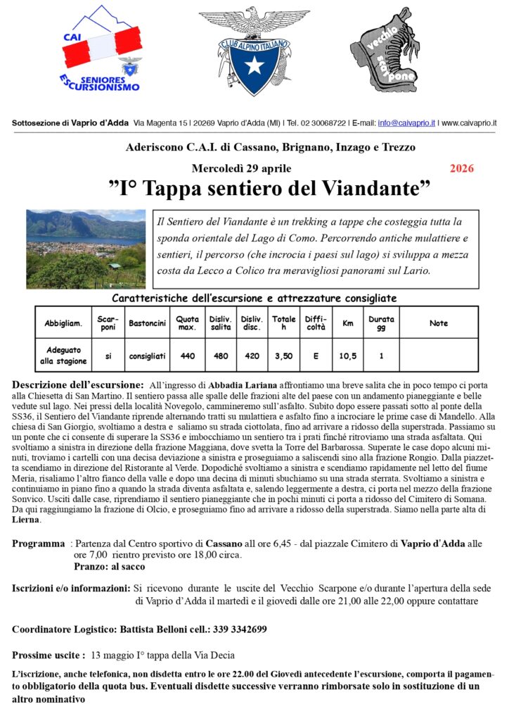giovedì 26 marzo 2026 alle ore 21 presso la sede CAI di Trezzo sull’Adda